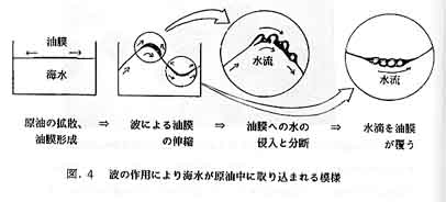 といった、油水の混合状態が生じる。これは波の作用で海水表面上の油膜が伸縮運