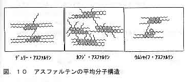 であり、原油中でのアスファルテンは、マルテン(レジン+オイル)中にミセル(会合体)と