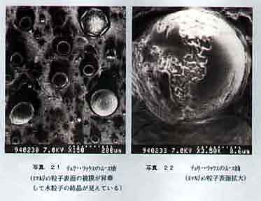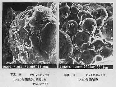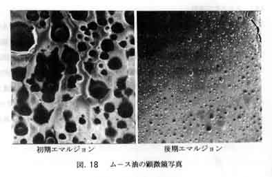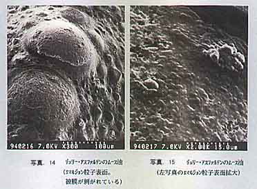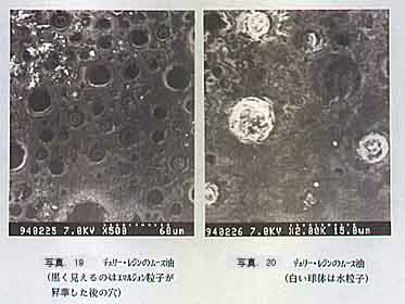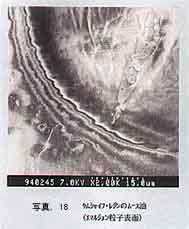 の初期エマルジョンと後期エマルジョンの表面を、同倍率で捉えた電子顕微鏡写真で