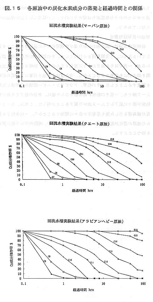 図.15は、同一条件における軽質原油と重質原油の炭化水素成分の消失と、経過時