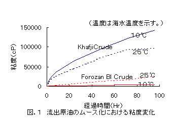 粘度及び表面張力の上昇といつた物性変化を生じ、海水−流出油間の密度差及び